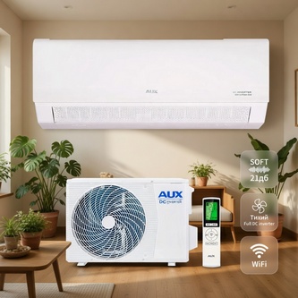 Инверторный настенный кондиционер AUX из серии BA Classic DC Inverter сочетает экономичное энергопотребление класса A и тихий уровень шума всего 21 дБ. Он эффективно охлаждает и обогревает помещение, работая при широком температурном диапазоне – от -15 °C для обогрева и от +16 °C для охлаждения.